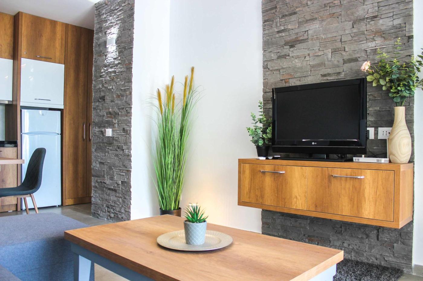 Apartment. This spacious apartment consists of 1 living room, 1 separate bedroom and 1 bathroom with a hairdryer. In the kitchen, guests will find a stovetop, a refrigerator, an oven and a microwave. This apartment is air-conditioned and features a TV, a washing machine and an electric kettle. The unit offers 4 beds.